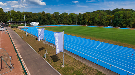blaue Leichtathletikanlage des TuS Köln rrh. |