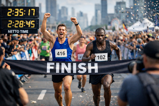 Doppelrolle der Zeitmessung im Laufsport. Die Bruttozeit entscheidet über den