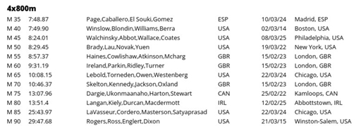 4x800m M 60 |
