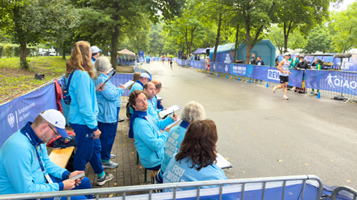 der Regel mehrere Kampfrichter entlang der Strecke. Sie beobachten die Athleten